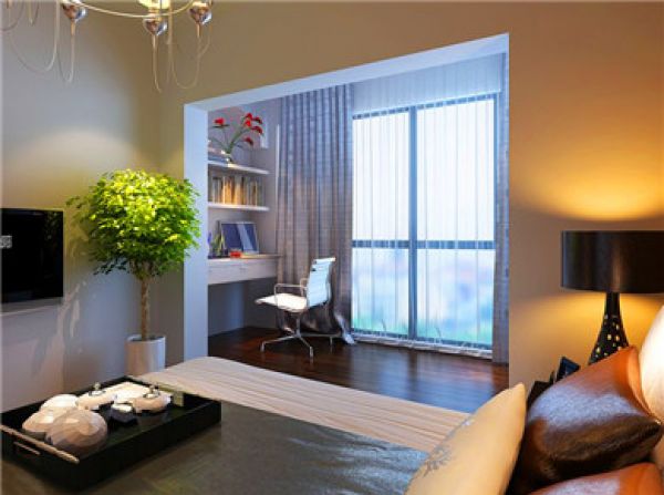 陽臺的空氣流通量好,接受的自然光線也很充足,將書房安放在陽臺也是十分合適的。在陽臺墻面立一整體書柜,下部設(shè)計成寫字桌面,頂部懸一伸縮式吊燈,在另一側(cè)設(shè)茶幾坐椅或逍遙椅,疲乏時還可放松精神,一樣的能達(dá)到書房的效果哦。