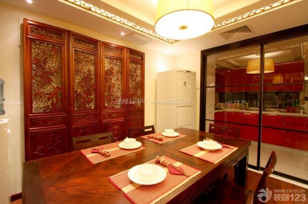 傳統的明清木門變成了精致的隔斷,擺在餐廳的一角,自然天成,十分典雅。