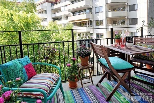 窄型小陽臺在裝修時一定難倒了不少人,陽臺的寬度不到一米,只有一張椅子這么長,容量十分有限。于是我們便從椅子出發(fā),在靠陽臺內(nèi)側(cè)放上適合寬度的大藤椅,在足下鋪上延伸空間大小、活潑空間氛圍的彩色條紋地毯,緊靠外側(cè)再放上幾個裝飾品,為了增添舒適度和隱蔽度,在外側(cè)按上窗簾是十分聰慧的選擇,輕松早就一款舒適型小陽臺。