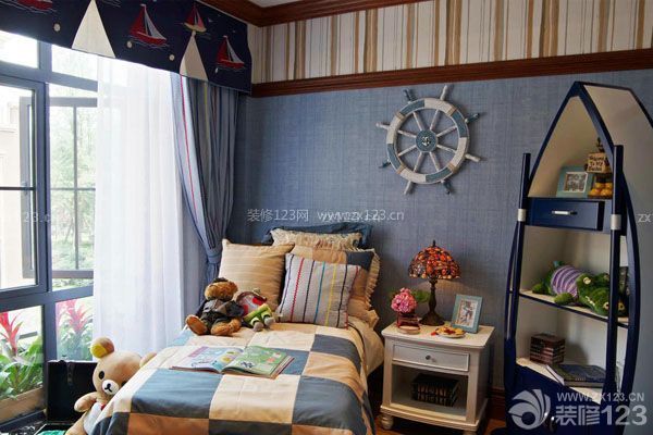 地中海裝修風格一般多用藍色、白色和黃色等比較自然的色彩才突出這個風格清新淡雅的海邊風格,在地中海風格兒童效果圖中在顏色的合理搭配下似乎跟人一種地中海具有的浪漫與唯美,不可否認的是兒童房采用地中海的風格,顏色搭配上就會給孩子營造一個輕松的環境,孩子在這樣的環境下生活也會覺得很輕松,有利于身心健康發展,地中海風格兒童房設計則是抓住了孩子對顏色搭配的需求。