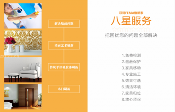 德國菲瑪舊墻翻新煥新家服務是由德國菲瑪品牌推出的一款專業家居涂裝服務。德國菲瑪是一家專業提供高端裝飾定制涂料的企業。公司座落在德國南部埃特林根鎮。德國菲瑪隸屬于國際著名的涂料跨國集團rpm旗下,是rpm在歐洲的核心工廠。德國菲瑪煥新家服務自推出以來以施工時間短、裝修效果好、服務周到的優勢深受業主好評。目前已經成為市場上首屈一指的墻面翻新美化品牌,德國菲瑪相關專家告訴記者,舊墻翻新是一項很復雜瑣碎的工程,看似簡單,實則包羅萬象,要做好并不容易,需要專業的施工人士、嚴謹的施工流程保障。在接受記者采訪時,德國菲瑪工作人員特別分享了舊墻翻新的八大注意事項,相當全面系統,值得2016年要翻新舊墻面的消費者重視。