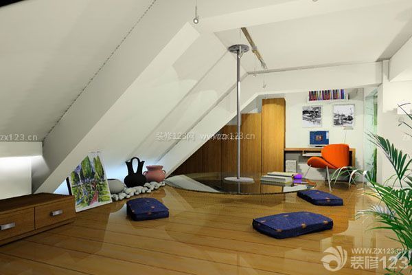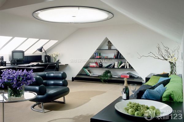 頂層的坡屋頂和別墅的小閣樓,都會(huì)有多處斜面建筑,如何利用改造它也是一門學(xué)問。通常,仰視三角形的屋頂會(huì)讓業(yè)主情緒緊張,惟一的辦法就是削弱它的壓抑感。設(shè)計(jì)師一般會(huì)將一些靜態(tài)的活動(dòng)安放在這種局促的空間。依照這種原則,可將斜屋頂下安排為安靜的工作間或是書房,或是一個(gè)靜靜欣賞音樂的音樂屋。也可以做成一間小小的廚房,但傾斜的坡度要能保障使用者自如地活動(dòng)。如果特別低矮的,只能做出一些小格子來,將書報(bào)、CD、玩具等瑣碎的物品統(tǒng)統(tǒng)收納儲(chǔ)存起來。