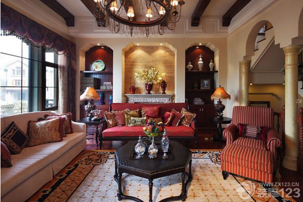 西班牙鮮明起伏的屋面,讓大多的西班牙建筑擁有非常優美的變化曲線用紅陶筒瓦以及鐵藝窗等建筑元素營造出柔和尊貴而又充滿質感的生活氛圍建筑風格,對文化石外墻紅色坡屋頂圓弧檐口等符號進行抽象化利用,如從紅陶土筒瓦到STUCCO手工抹灰墻,從弧型墻到步陽臺,還有鐵藝陶藝的小品等,都表達出西班牙建筑裝修設計的典型風格。