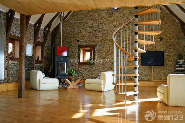 樓中樓樓梯材質二:實木樓梯