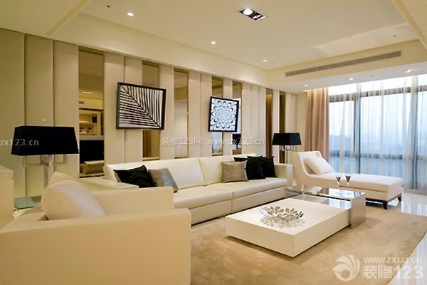 如果客廳的采光度不佳,兩墻面距離短,那么可以試試反光材質(zhì)的運用,不僅可以很好的折射光線改善采光,還可以營造更大的視覺面積。如果采用鏡面+掛畫+投射燈的設計,能營造出3種層次感,一是投射燈投射在反光玻璃上,減少吊頂?shù)膲阂郑坏诙辽默F(xiàn)代掛畫聚焦視覺中心;第三,沙發(fā)頂部反光玻璃,通過反射作用增加視覺縱深。