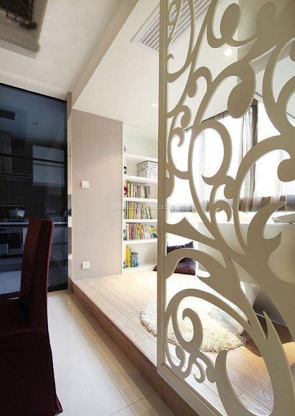 這里原本是個書房,因為會影響整體的采光再加上主人家對書房的使用性不強(qiáng),所以就被要求改為休閑平臺,再局部做點嵌入式收納空間,感覺很不錯~