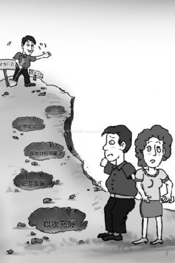3)混水摸魚。因為大部分的業主對工序不了解,有一些人就利用這一點,謊報工程工序,本來一道工序能完成的,就變成了二道。事實上這些加進去的工序是不存在的而業主因為這些工序增加的貨就會被轉移。典型的例子是在做一項泥水工程時,要求業主購買什么什么添加劑,雖然在泥工中使用添加劑是存在的,但有一些人根本就不會真的添加進去。