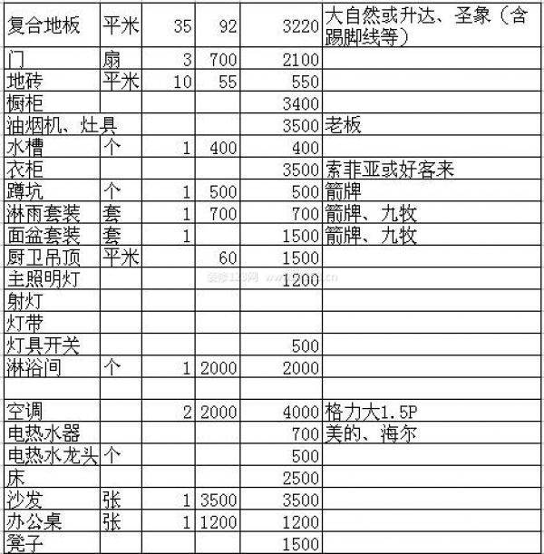臥室、廚衛(wèi)及其他空間裝修預(yù)算請(qǐng)?jiān)斠娤马?yè)。
