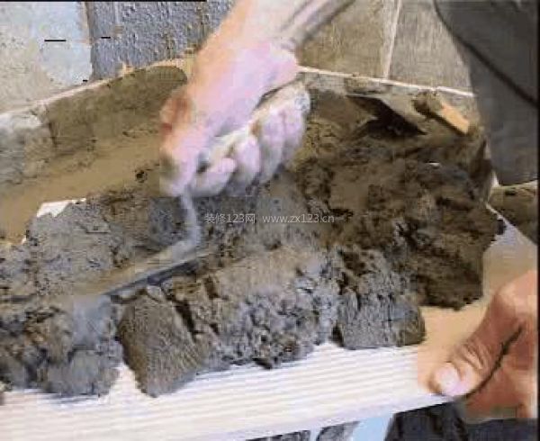 第一步:在泡好的瓷磚上滿批水泥,要飽滿。