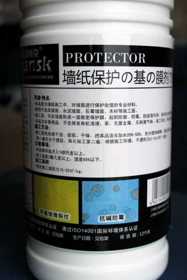 墻紙基膜用途:墻紙基膜是做底用的,水性,無刺激性味道,是代替清漆的環保產品。主要是在墻紙和墻面中間行成一道堅硬的保護膜,固化和保護膩子表層,便于墻紙粘貼,也方便二次墻紙施工。但要等膩子完全干燥才能涂刷。墻紙基膜使墻紙粘牢在墻上,如果無“內墻滲水”或人為破壞,正常的墻紙施工粘貼后,應不會有脫落現象。