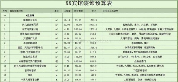 既然裝修前是一定要做裝修預(yù)算表的,那么賓館裝修費用的預(yù)算表又該如何做呢?今天小編就來對賓館裝修費用解密,給大家一份詳細的賓館裝飾預(yù)算表,供大家參考參考。