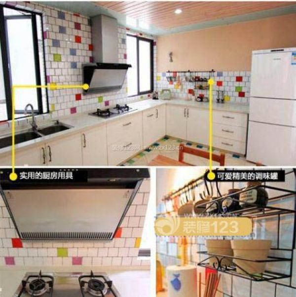 點評:廚房的設(shè)計別致可愛,墻磚五顏六色使廚房俏皮鮮活起來,可愛的調(diào)味瓶安放在此處是一個很好的裝飾品,廚房用具款式不花俏卻很實用。