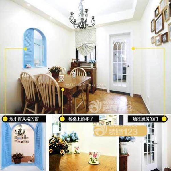 點評:小小的餐廳也很花心思,主人在細(xì)節(jié)上非常花心思。實木的餐桌和深色的地板搭在一起非常和諧,餐桌上、角落里都點綴著鮮花盆栽。藍色的窗戶把人帶到了那遙遠的海邊,好像身處在那些藍頂白墻的小屋一樣,仿佛推開窗就能看到那一望無際的愛情海。