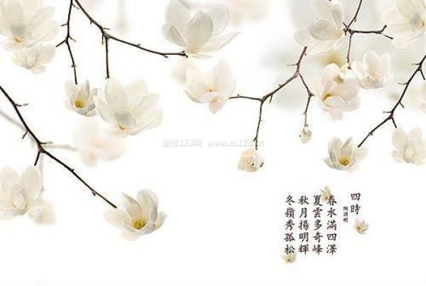 用傲雪凌霜的白梅作為畫面的主要元素,再題上陶淵明的《四時(shí)》詩(shī),讓墻面顯得高雅大氣,充滿詩(shī)情畫意。