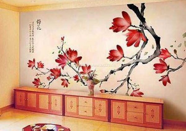 一枝水墨渲染的紅梅,加上留白處的題詩(shī),如同一幅精美的裝飾畫。放大后裝飾整個(gè)墻面,讓背景墻顯得更加完整大氣。