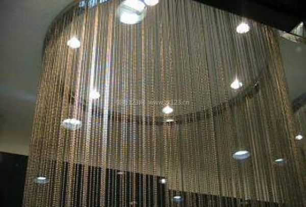 金屬簾子多由一串串珠子或金屬絲組成,并在表面刷上了帶有金屬光澤的涂料。用帶有金屬光澤的簾子可以讓房間的整體風(fēng)格顯得更前衛(wèi)、現(xiàn)代。