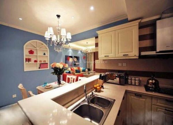 廚房是開放式的。就用了一點(diǎn)點(diǎn)矮墻圈起來算是跟餐廳的隔斷。我喜歡開放式的設(shè)計。