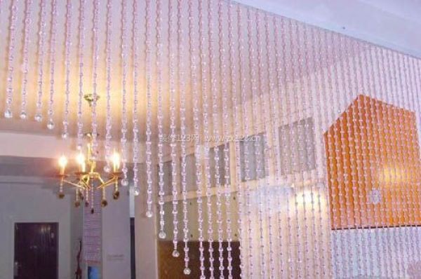 用珠簾來分隔空間,既能夠保持空間的通透性,不影響采光,又能為房間增添浪漫氣氛,顏色種類多樣,可根據風格來搭配。多用于臥室或小面積的分隔,適合田園、現代簡約風格。