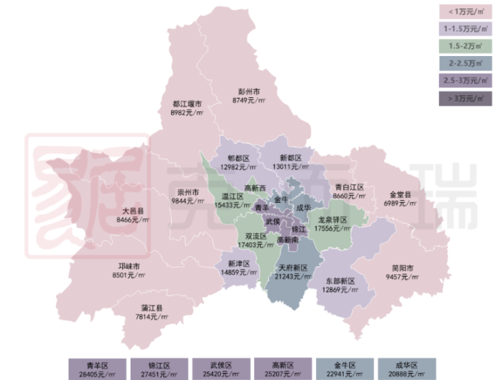 均價(jià)在2-2.5w檔的,主要是金牛區(qū)、成華區(qū)和天府新區(qū),都還有不少均價(jià)低于2w的新盤。