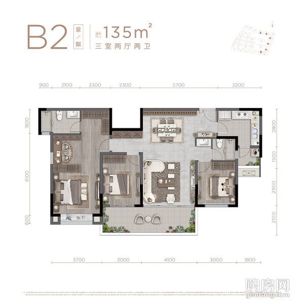 人居麓湖林語B2戶型(3室2廳,135平,南)