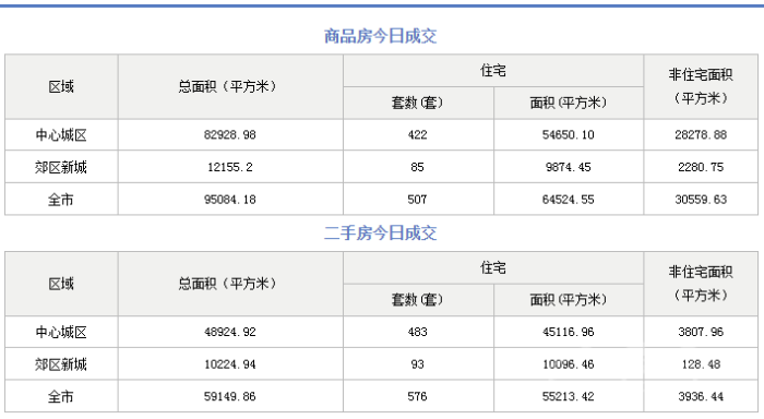 8月2日,成都市住建局住建蓉e辦數據顯示,成都市全市商品房成交(備案)總面積95084.18平方米,其中其中商品住宅成交(備案)507套,商品住宅成交(備案)面積64524.55平方米。二手房成交(備案)總面積59149.86方米,其中二手住宅成交備576套,二手住宅成交(備案)面積55213.42平方米。