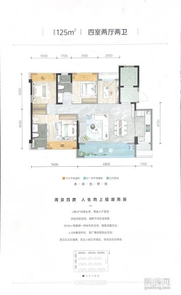 悅湖金茂悅-建面約125㎡戶型(4室2廳,125平,南北)