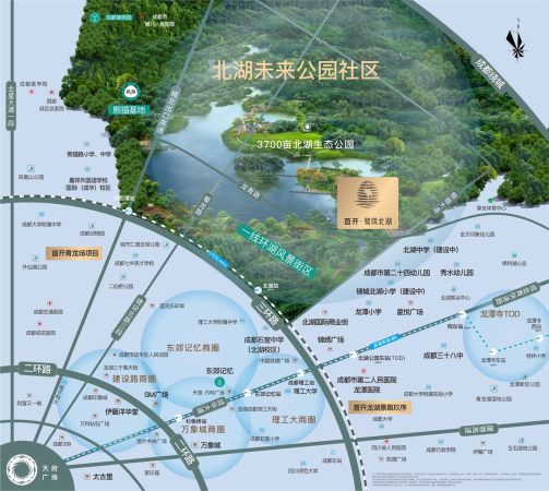 首開金地鷺鳴北湖,位于成都三環最大湖區北湖生態公園內;地處成都首批次啟動建設的未來公園社區之一的北湖未來公園社區內,北湖未來公園社區將統籌構建“一灣一園、三港五區”的空間布局,“一灣一園”共同構筑藍綠交融、動靜相宜的國際旅游度假新高地,“三港五區”聯動彰顯“創意工作、愜意生活”的幸福味道。