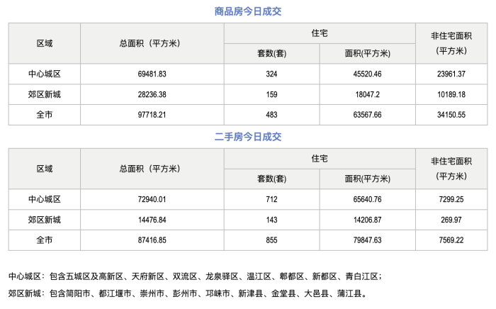 8月15日,成都市住建局住建蓉e辦數據顯示,成都市全市商品房成交(備案)總面積97718.21平方米,其中其中商品住宅成交(備案)483套,商品住宅成交(備案)面積63567.66平方米。二手房成交(備案)總面積87416.85平方米,其中二手住宅成交備案855套,二手住宅成交(備案)面積79847.63平方米。