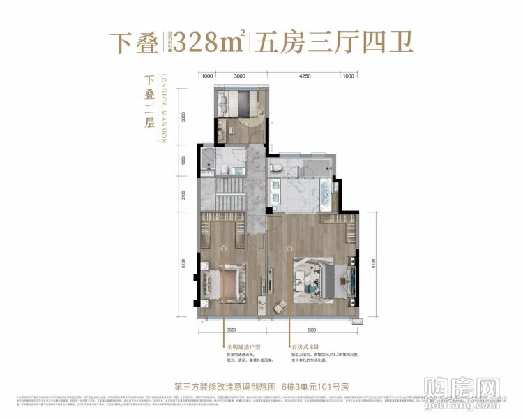 5室3廳4衛(wèi),【下疊·約328㎡五房三廳四衛(wèi)】(5室3廳,328平,南北)
