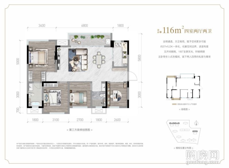 新城德商蓉御天驕116戶型(4室2廳,116平,南)