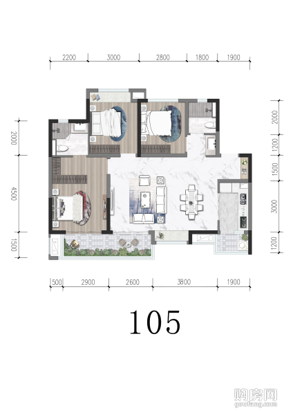105戶型(3室2廳,105平,東)