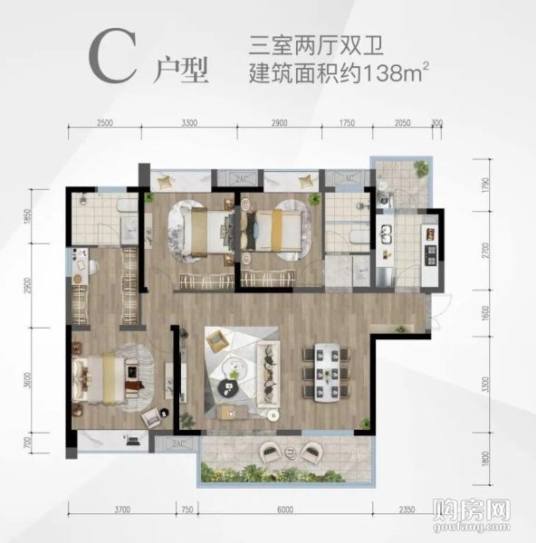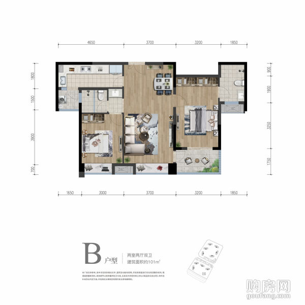 2室2廳2衛,B戶型(2室2廳,101平,南)