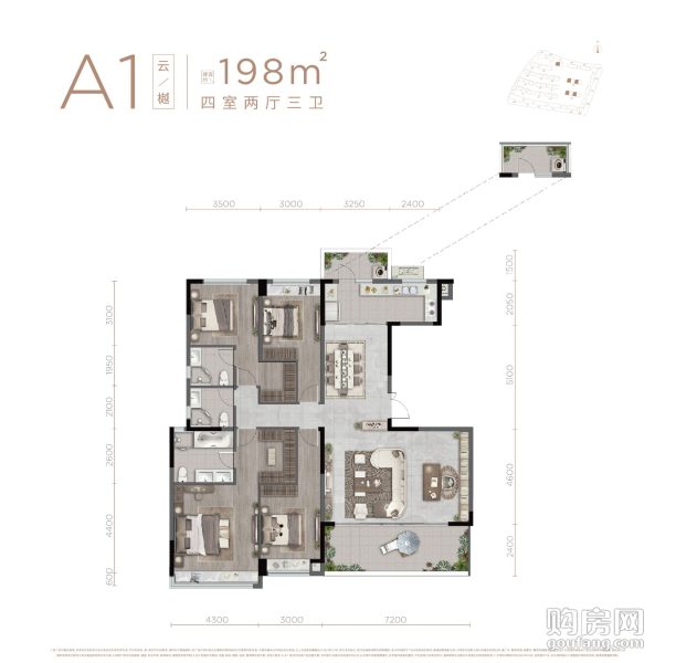 人居麓湖林語A1戶型(4室2廳,198平,南)