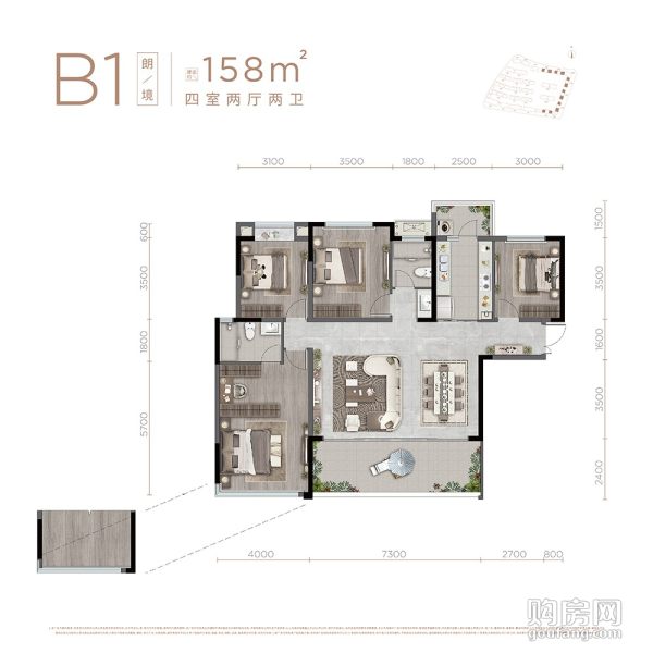 人居麓湖林語B1戶型(4室2廳,158平,南)