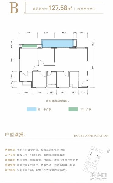 成都萬朵城B戶型(4室2廳,127.58平,南北)