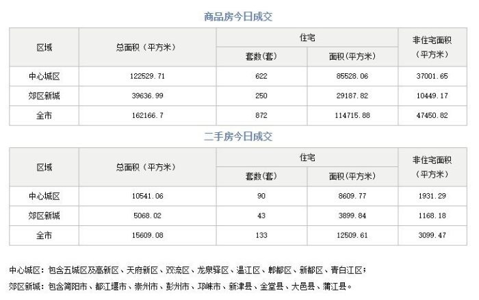 截至2021年7月6日17:40分,成都市全市商品房成交(備案)總面積162166.7平方米,其中其中商品住宅成交(備案)872套,商品住宅成交(備案)面積114715.88平方米。